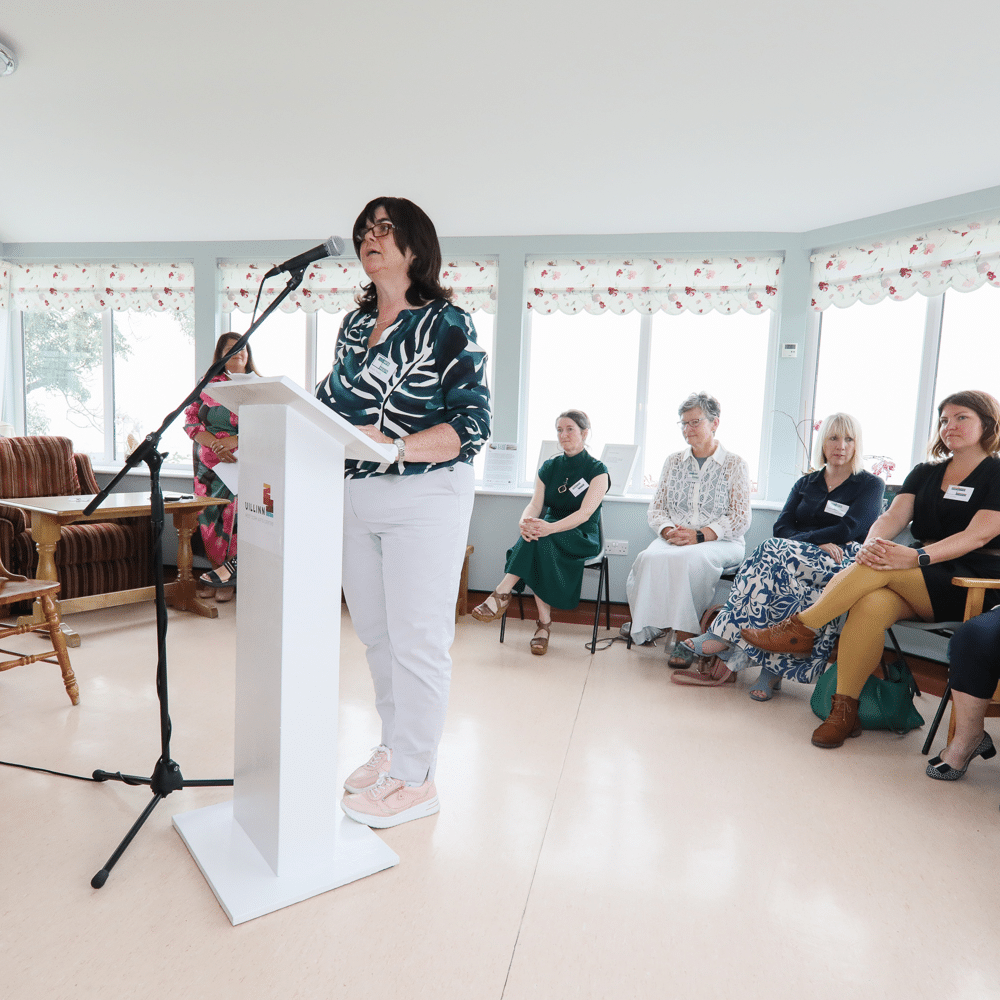 Attendees filed in, settling into the hospital’s comfortable Day Room, and admiring the panoramic view of Schull’s beautiful bay stretching across the horizon just outside the window. Director of Nursing at Schull Community Hospital, Ms Róisín Walsh, opened the event, warmly welcoming the small crowd that filled the space. She spoke about the lasting impact of the programme, and the benefits experienced by its participants.