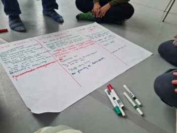 After lunch, Arts for Health team members attended Exploring Working with Different Cognitive and Physical Abilities and Deepening the Artists Experiential Learning. Two artists from Saolta Arts’ MendingHeArts Project also joined the session, continuing our year-long learning exchange. The afternoon workshop focused on session structure, creating a safe environment, and fostering meaningful inclusion. In addition, it offered artists the opportunity to discuss scenarios from their own work.
